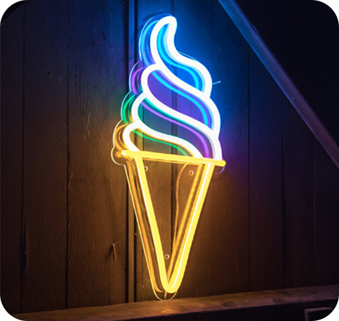 Léchez vous les babines devant notre Enseigne LED multicolore au design de Glace Italienne. Visible de loin, elle attirera à coup sûr de nombreux clients vers votre boutique. Soyons francs, on A.D.O.R.E !
