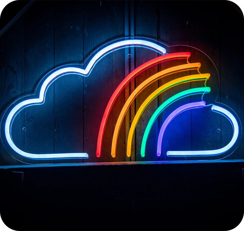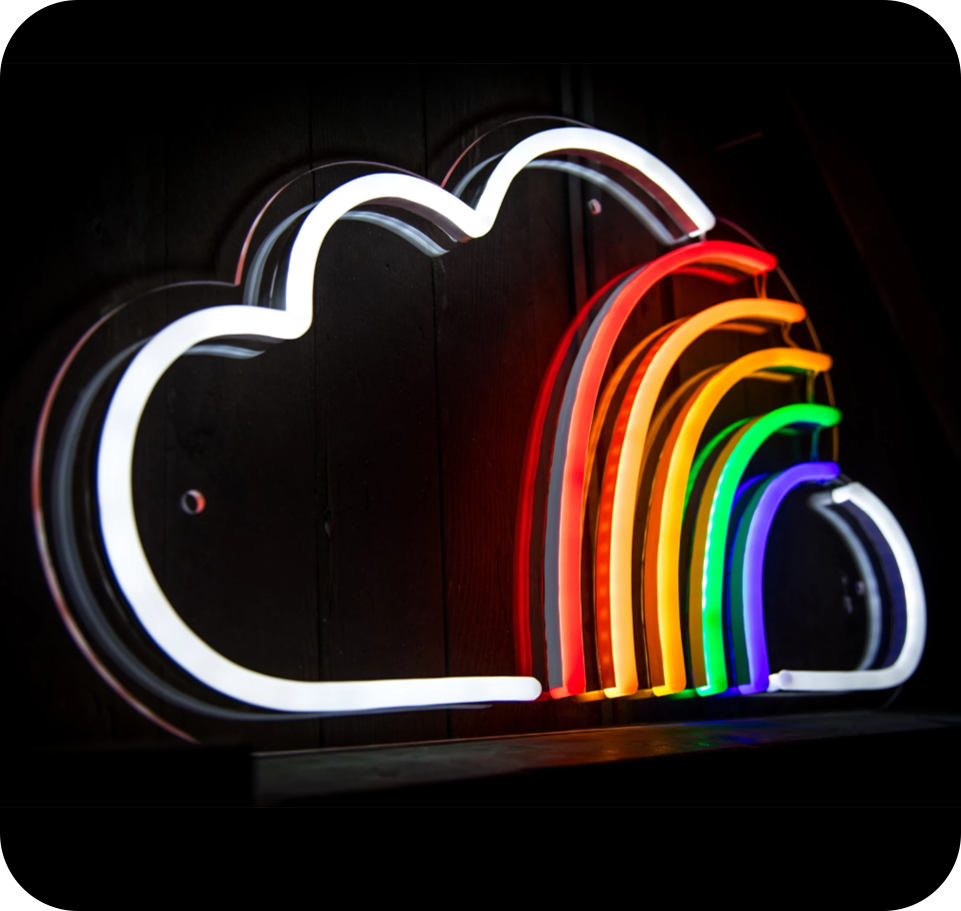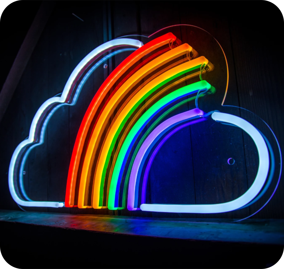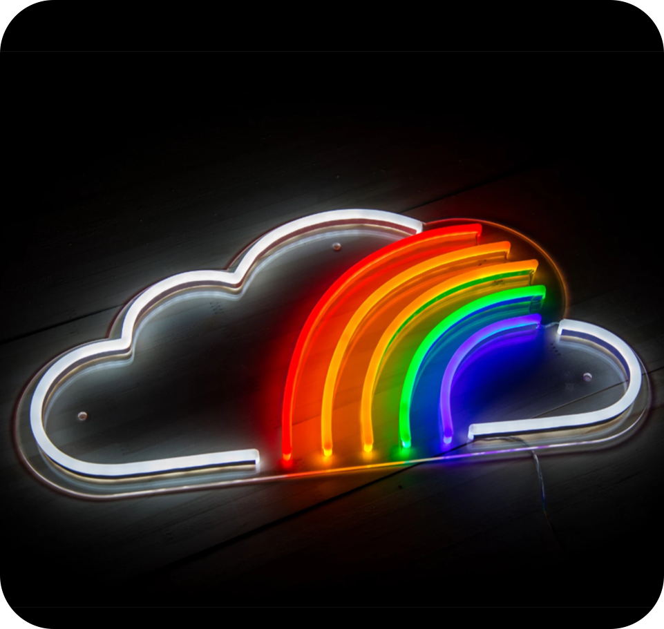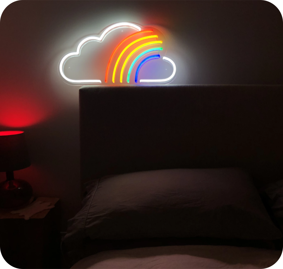 Avec notre Enseigne lumineuse au LED de style Néon, plus besoin d'attendre pour en apercevoir, votre Nuage Arc-En-Ciel est directement disponible dans votre intérieur afin d'égailler votre quotidien.
