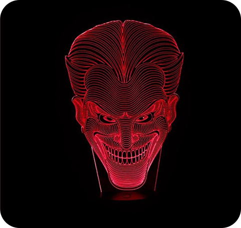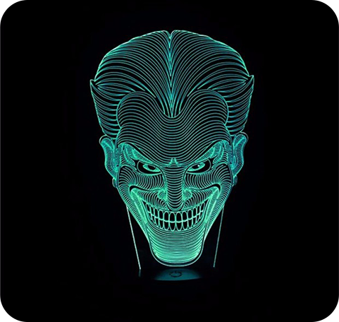 A l'approche du nouveau film consacré au Joker, nous vous avons dégoté un petit bijou d'illusion. Notre Lampe LED 3D vous donnera l'impression de dominer Gotham City ! Mais attention à vos arrières, Batman rode....